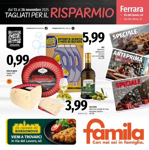 FAMILA tratta i tuoi dati con cura, nel rispetto dell'attuale normativa. Fornisci il consenso MARKETING ed il consenso alla PROFILAZIONE dall'area myFamila per assicurarti promozioni...