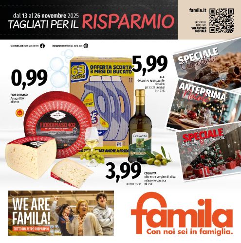 FAMILA tratta i tuoi dati con cura, nel rispetto dell'attuale normativa. Fornisci il consenso MARKETING ed il consenso alla PROFILAZIONE dall'area myFamila per assicurarti promozioni...