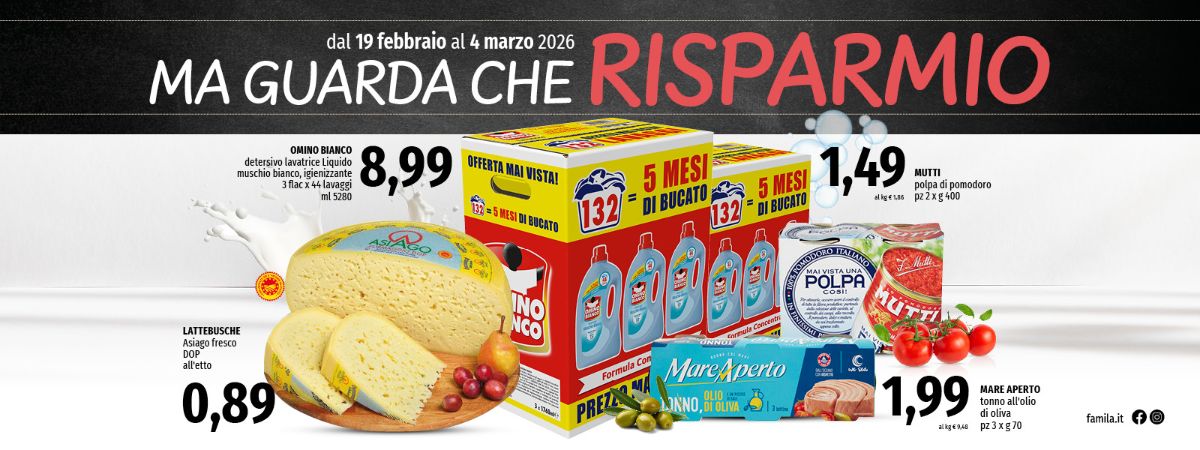 FAMILA tratta i tuoi dati con cura, nel rispetto dell'attuale normativa. Fornisci il consenso MARKETING ed il consenso alla PROFILAZIONE dall'area myFamila per assicurarti promozioni...