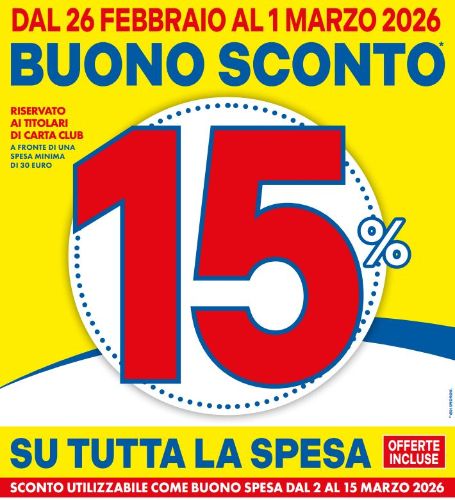 BUONO SCONTO 15% su tutta la spesa!